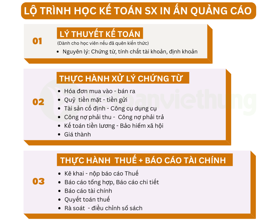 Trên đây chi tiết về chương trình học kế toán công ty in ấn quảng cáo là một trong ngành lĩnh vực đặc thù tương đối phát sinh nhiều trong quá trình hoàn thành 1 sản phẩm dẫn đến nhầm lẫn trong công tác hạch toán – chỉ với khóa học 90 phút mỗi ngày 01 khóa học duy nhất cam kết bạn sẽ thành thạo các kỹ năng nghiệp vụ từ cơ bản đến nâng cao, thuế & BCTC!