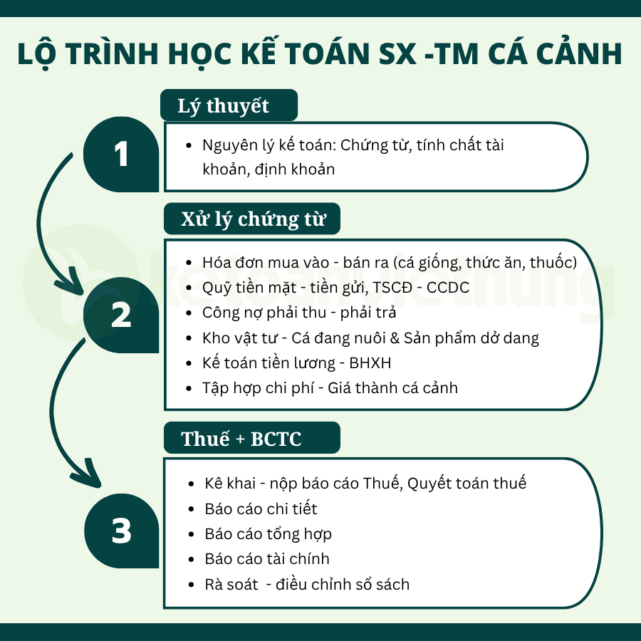 Trên đây là nội dung khóa học kế toán sản xuất kinh doanh cá cảnh chuyên sâu đặc thù sẽ thường xuyên gặp tình huống phát sinh trong quá trình hạch toán, hóa đơn chứng từ Kế Toán Việt Hưng sẽ giúp bạn luyện thành thạo chỉ với 25 buổi học trực tiếp giáo viên là Kế toán trưởng 100 % CAM KẾT RA NGHỀ.