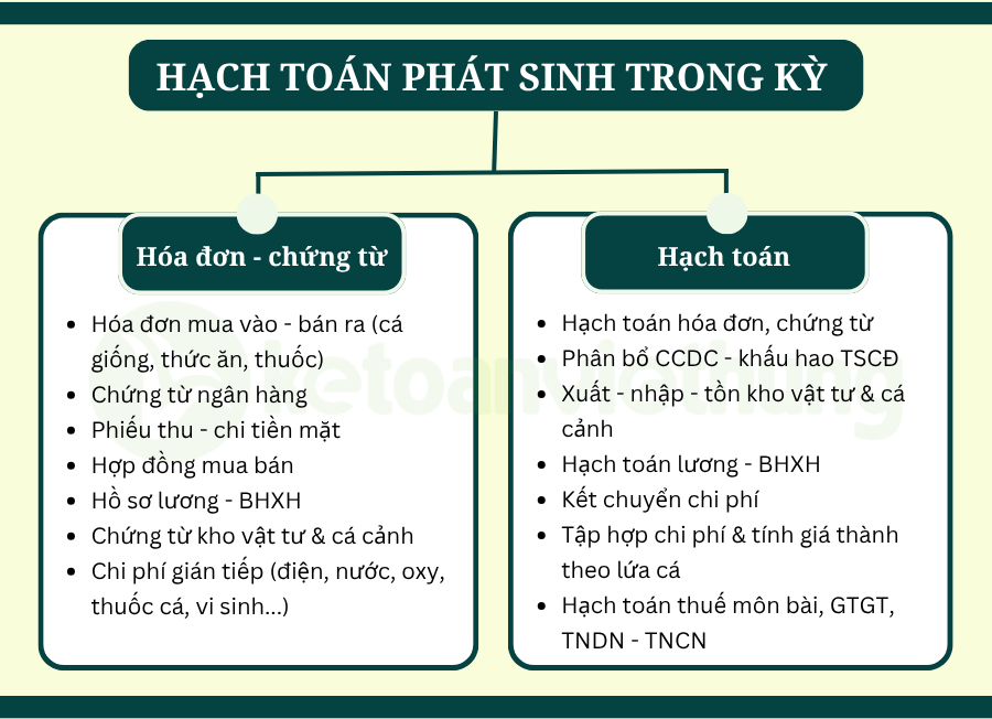 2. Xử lý phát sinh trong kỳ của kế toán sản xuất kinh doanh cá cảnh