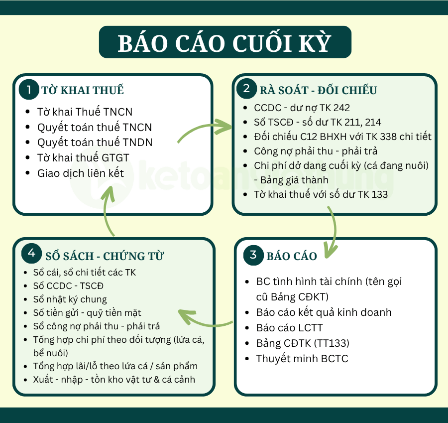 3. Xử lý các nội dung cuối kỳ trong kế toán sản xuất kinh doanh cá cảnh